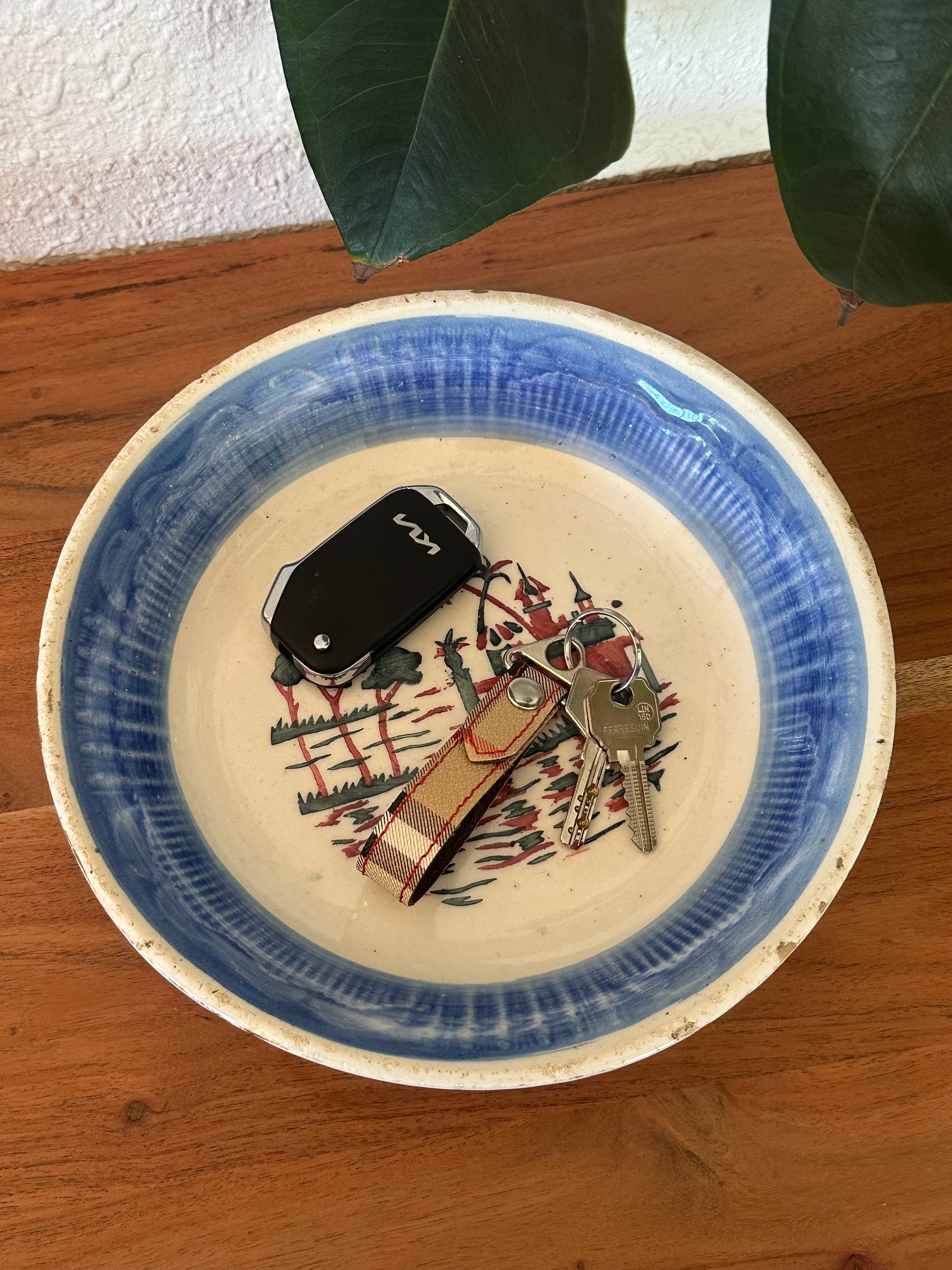 Llavero metálico con acabados en materiales de lujo reciclados, trabajado a mano.